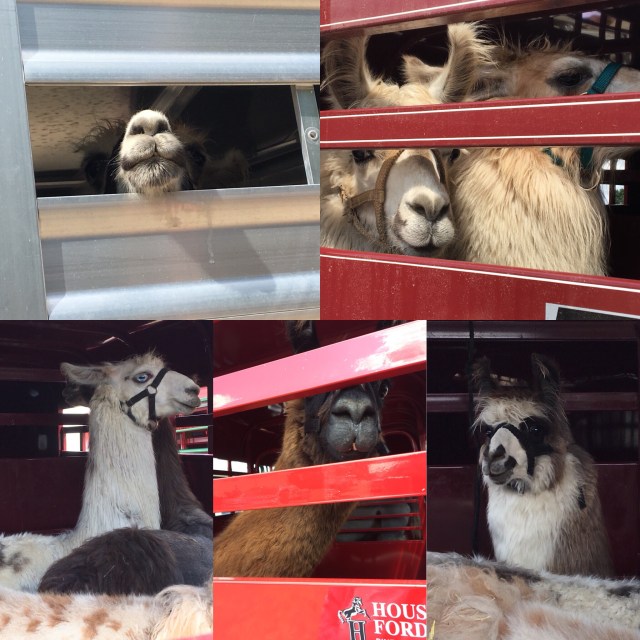 Gayle & Joey went over to see baby animals while I was chatting, and on my way to meet them I found the Llama trucks bringing in all our buddies for later tonight!