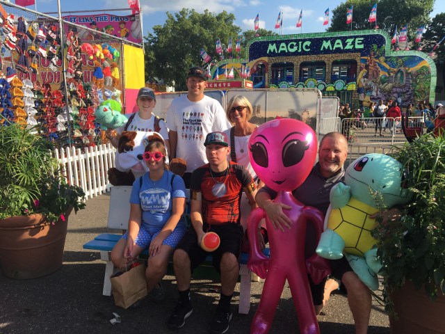 Gayle & Joey are active Pokemon Go friends and I have been slacking for the last year, due to other family, work, school and puppy issues, but they helped me catch a few new pokemon today. This one is known as “Drunk Panda” Gayle suggested it was my State Fair spirit animal!