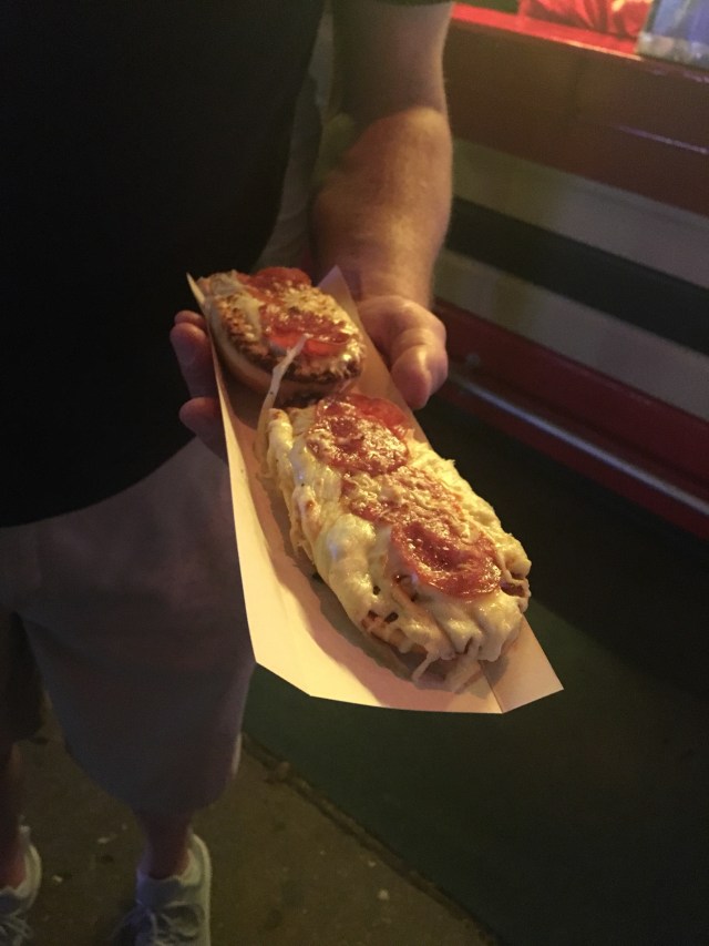 Still hungry…Mike grabbed a foot long pepperoni cheese bread at the Italian Junction next door.
