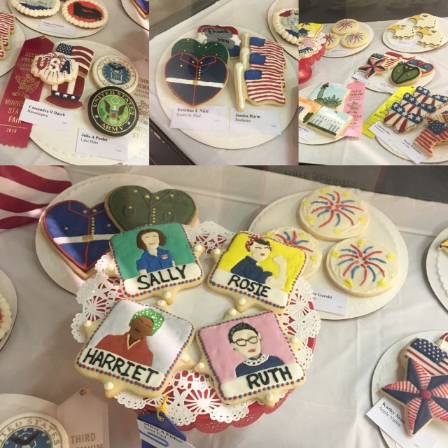 My friend Andrea was heading back over to the fair today with friends and we connected in the Creative Activities building. I finally discovered the decorated cookie display, after thinking I had seen every nook & cranny….just goes to show, you an never see it all in twelve days.