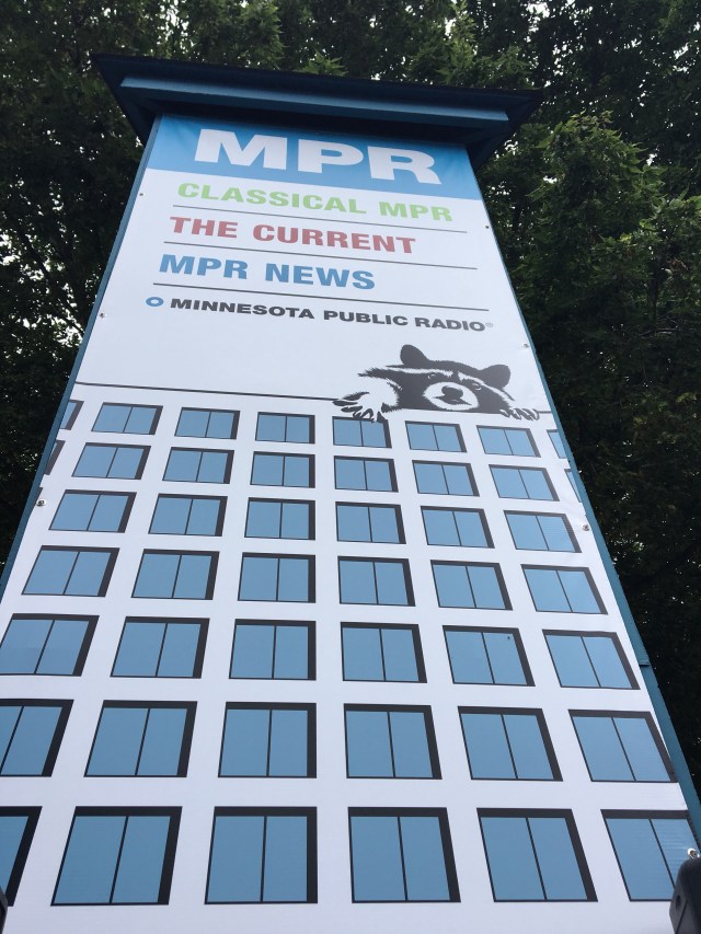 I went to the MPR booth to get my member gift, a crossbody backpack, that I’ll never use. This summer MPR brought us coverage of a raccoon that scaled a building downtown and the whole twin cities was captivated by it and rooting for its survival & freedom! The MPR booth brought those memories to life in their banner and displays.