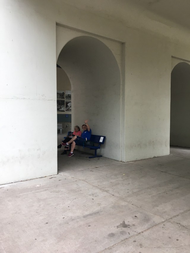 I headed over to find Trina and her mom near the grandstand, protected from the wind under an arch.