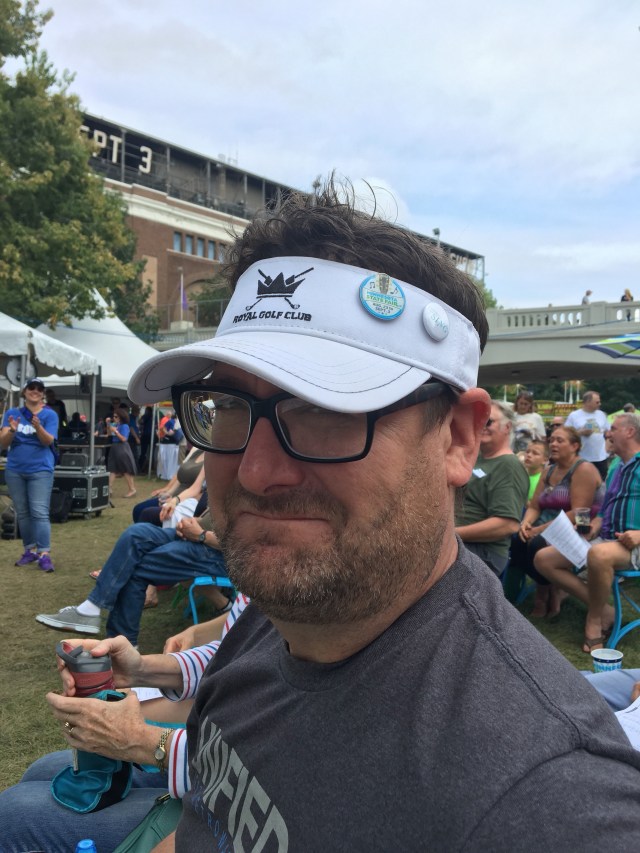 They passed out sheet music and buttons, and we readied ourselves. Michael turned to me and said, he never thought he’d be a guy with State Fair swag on his hat…