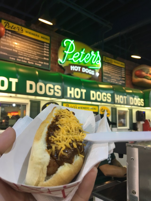 I was hungry and realized I had eaten nothing but part of a meatball smorgasbord and pie today so I grabbed a Peters chili dog. Awesome choice @ almost 8pm… not.