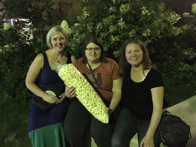 I had to get some after hours ashes deposited in a significant spot, but it was still too soon. I then joined Andrea et al outside of the Fine Art Building. Andrea finally got her kettle corn!