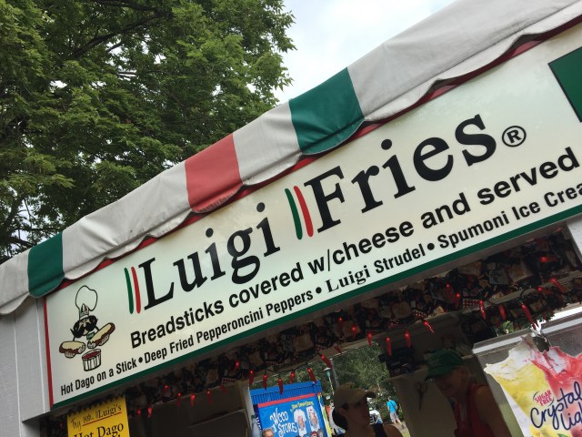 We found the Luigi Fries stand, always delicious, garlicky, cheesy breadsticks with marinara.