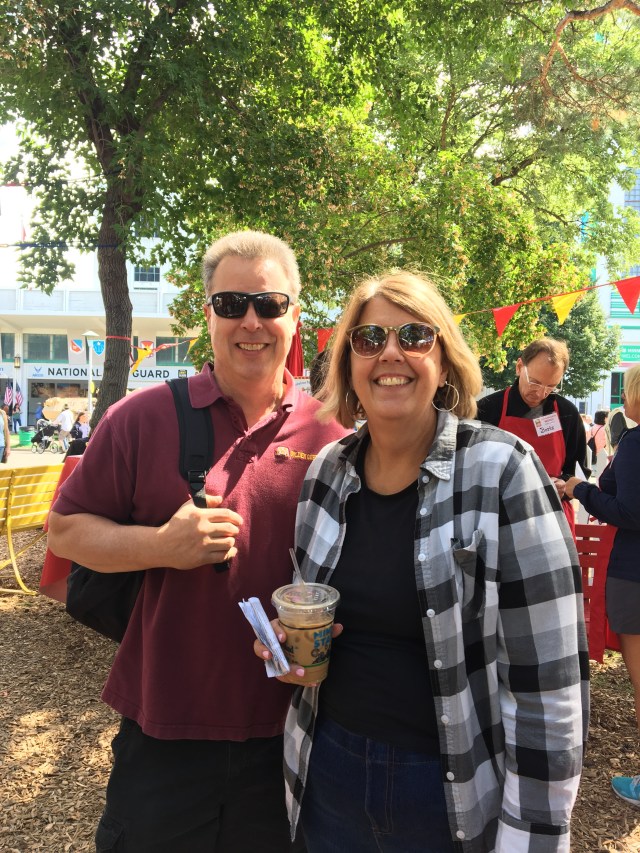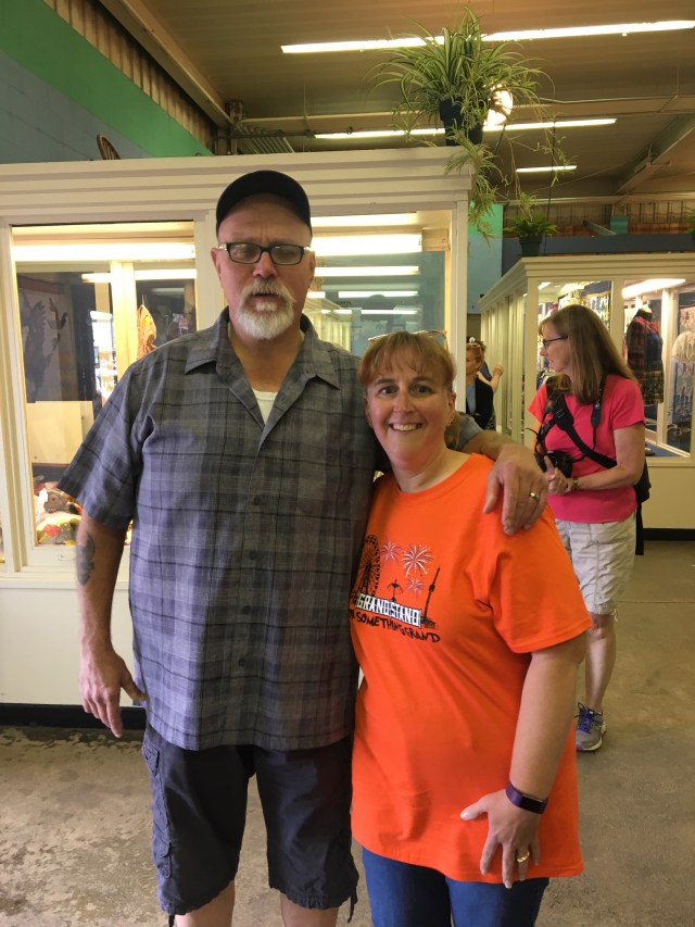 As I popped into the side door of the Creative Activities, I ran into my coworker and her husband! They tried to get parked on the grounds, but ended up in a yard spot! She remembered to wear her Boston Scientific shirt!
