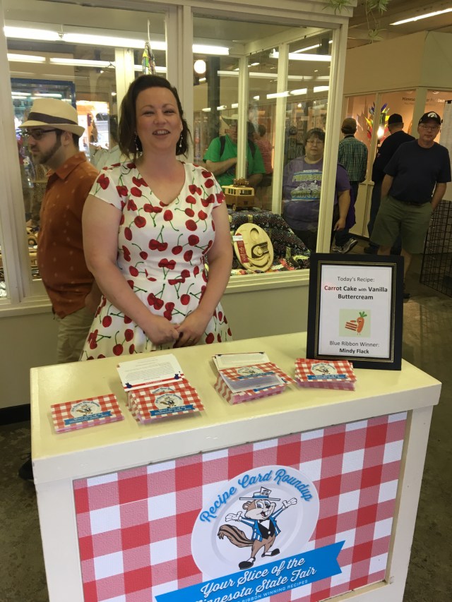 I wanted to pick up the recipe card for the day, so I walked to Creative Activities. I passed the cookie dough on a stick booth and they had a line @ 9:30 am. Now, I can’t judge dough eaters (I eat my own) but this is something I wouldn’t consume at the fair. I wonder what’s (synthetic?) in it to make it food safe & stable to serve here? Plus I don’t think I’d feel very good after eating it. I’m in it for the marathon, not a sprint!