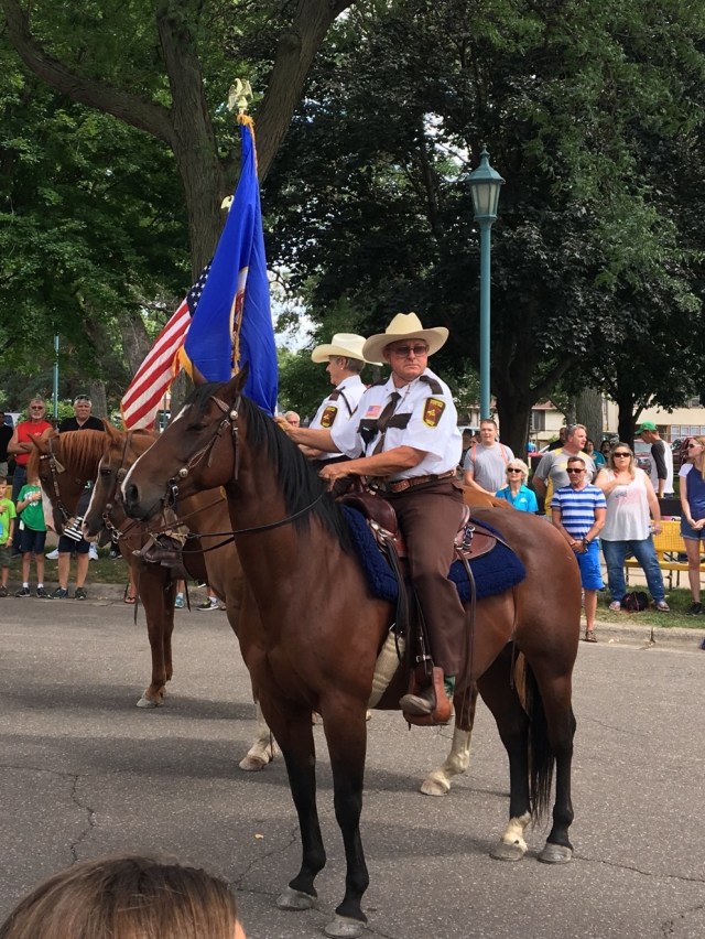 The parade starts every day at 2:00, and I take pictures of every float. I scroll through all the pictures and realize they’re often the same images every day. I think though as I look back, this is a new guy carrying the flag today. I swear, for years, it was the same guy.