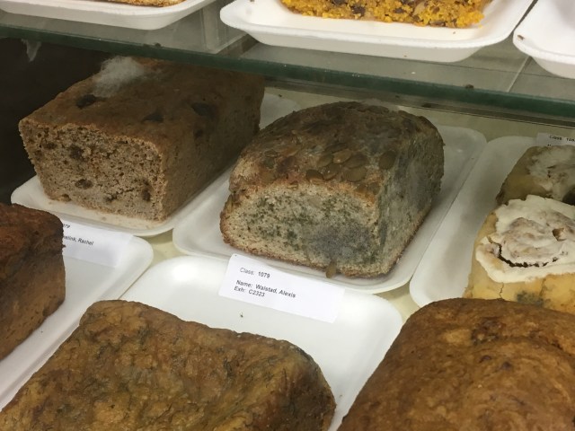 The prize winning pies and cakes fared a little better. The pies get the limited refrigeration.