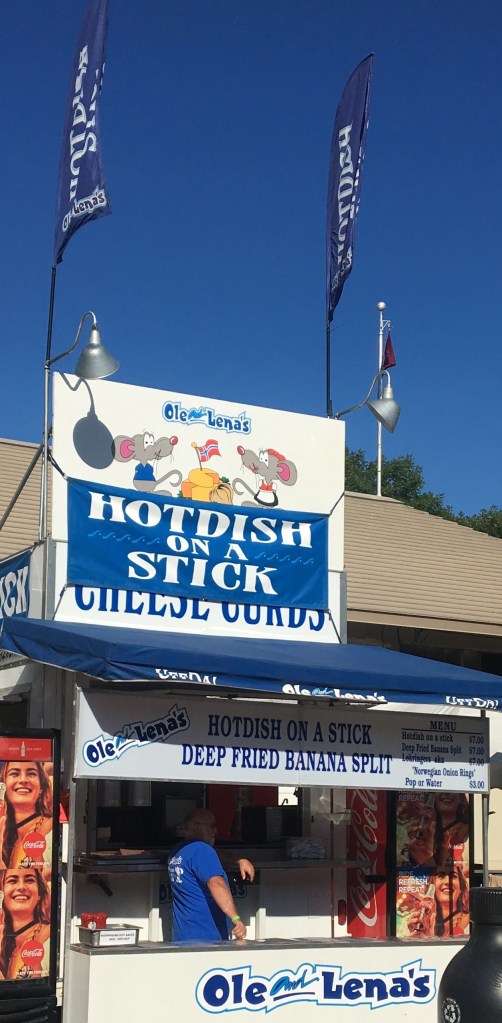 I wasn’t sure exactly where I was heading. I noticed the Hot Dish on a stick stand. I’m not sure that’s a place from which I’ll ever eat. It was eye catching, matching the clear blue sky.