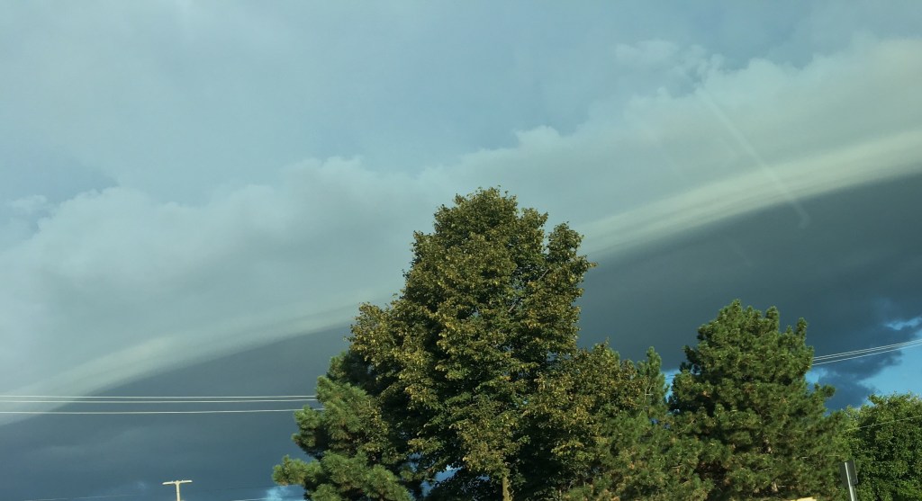 Thursday was just one more in a series of amazing days. There was a strange shelf cloud in the sky as I drove over to park at Mom’s. It didn’t amount to anything, thankfully.