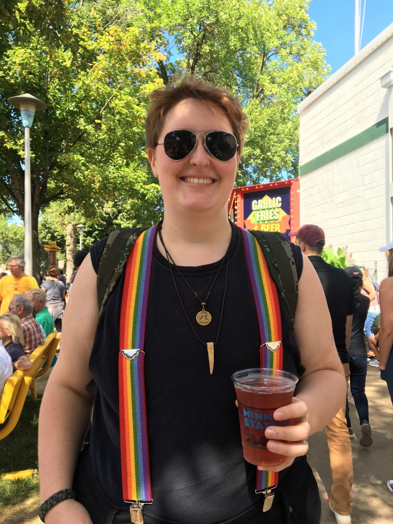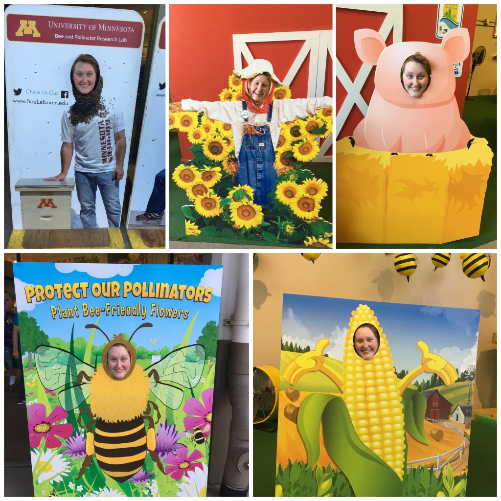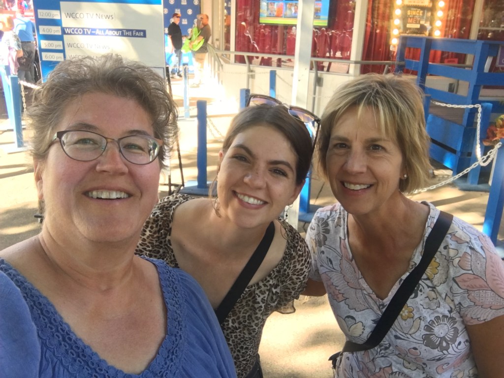 I fetched the youth and once we had some lunch and were ready to head back over, we noticed a couple waiting for the Lexington bus. They had all the telltale signs that they were headed to the fair, backpack, fanny packs and floppy safari hats! Thinking about WWCJD (What Would Carol Jo Do) we pulled over and tried to not come across as creepy, then offered them a ride. They gladly accepted, we must not have appeared too threatening. It is such a small world. As the general conversation turned to questions about college, it turns out the couple once lived in Northfield and knew some faculty at St. Olaf. Mom would have loved this story.