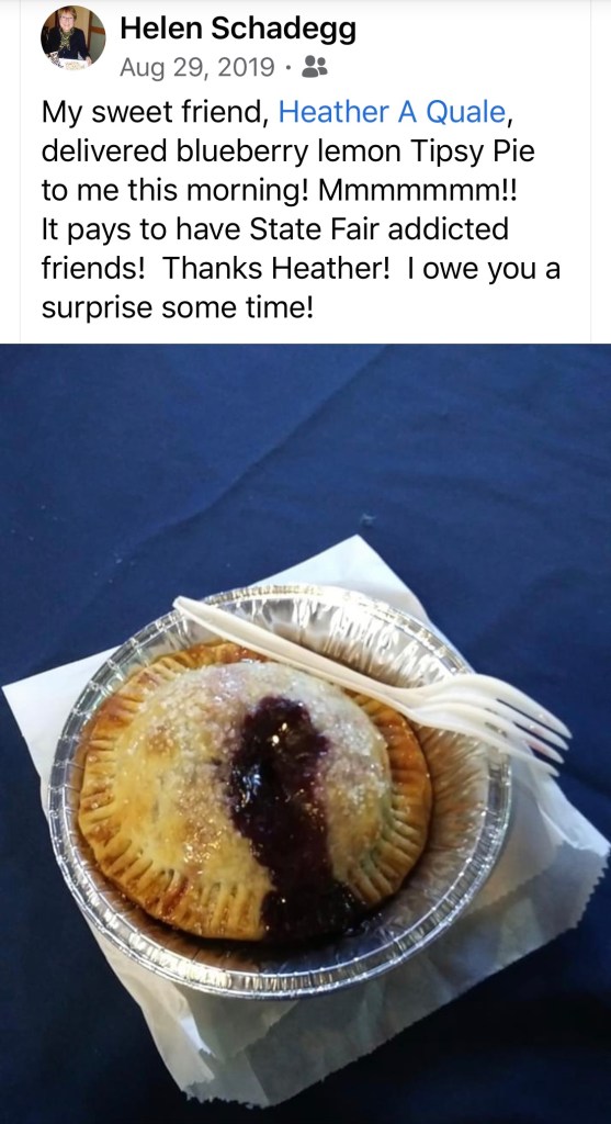 If I remember correctly, Sara at Tipsy Pies had put out a broadcast for help wanted at the booth. I had too many activities and people connections on my schedule today, I couldn’t help. I decided to stop by and see if things were OK… and Sara gave me this pie. This was the cutest, happiest little pie I’d ever seen! It was delicious too!