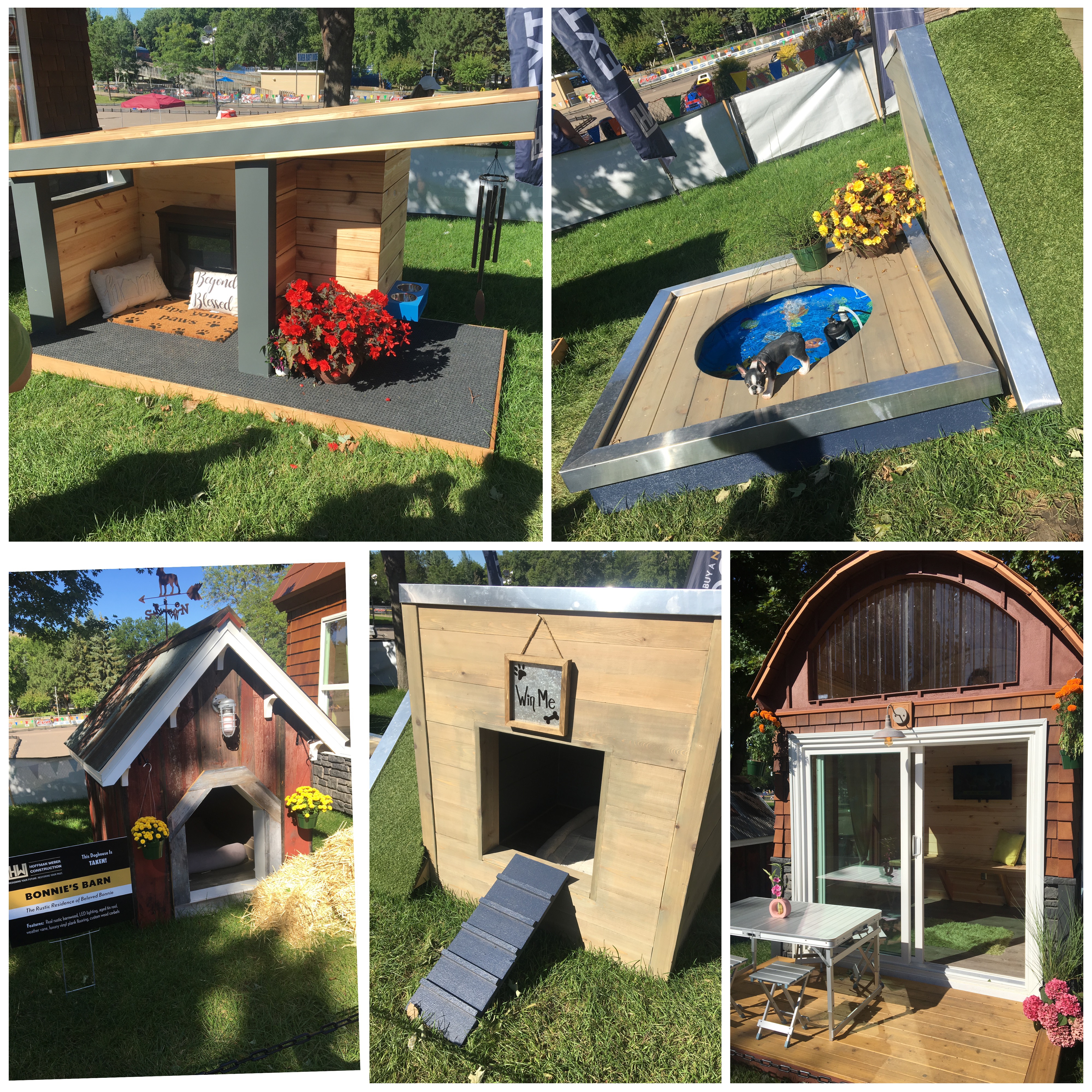 I was ambling around and wound my way back past the DNR and came upon a display of custom dog houses & kid’s playhouse. Maybe Mildred needs her own she-shed!