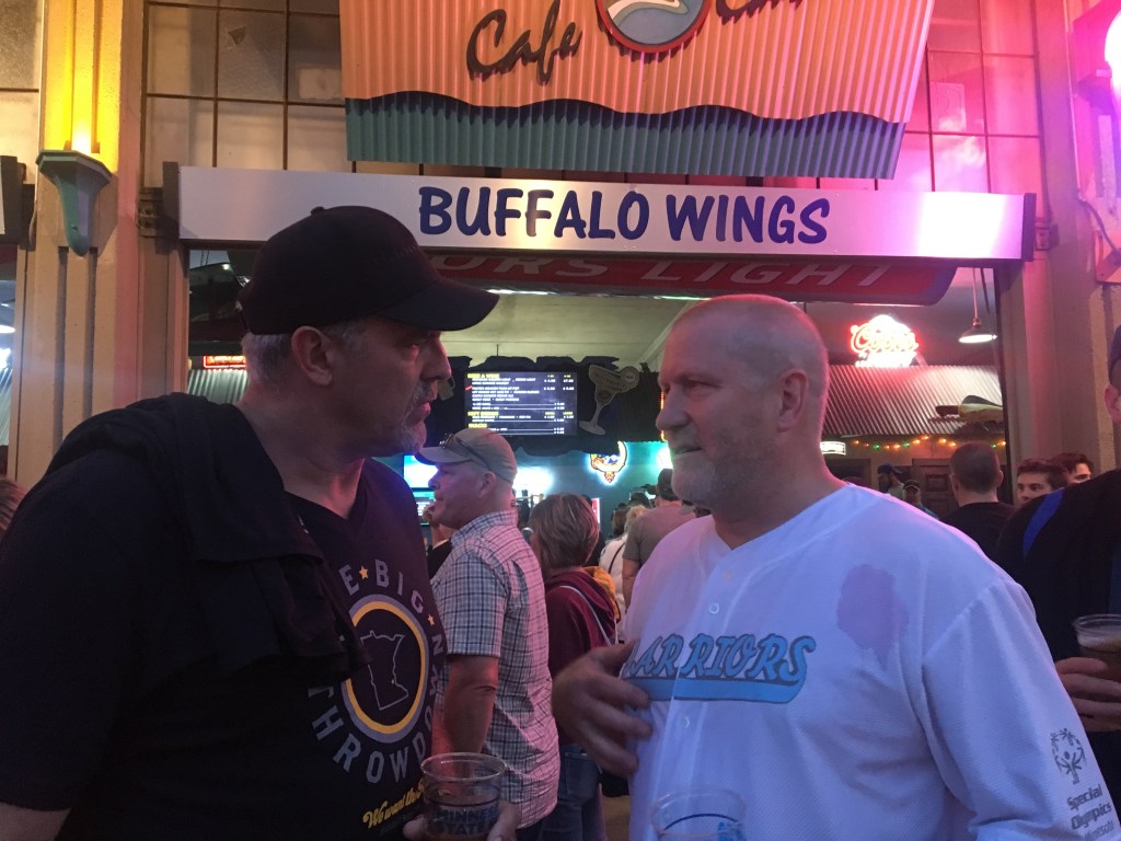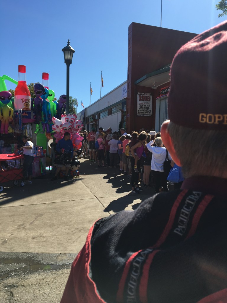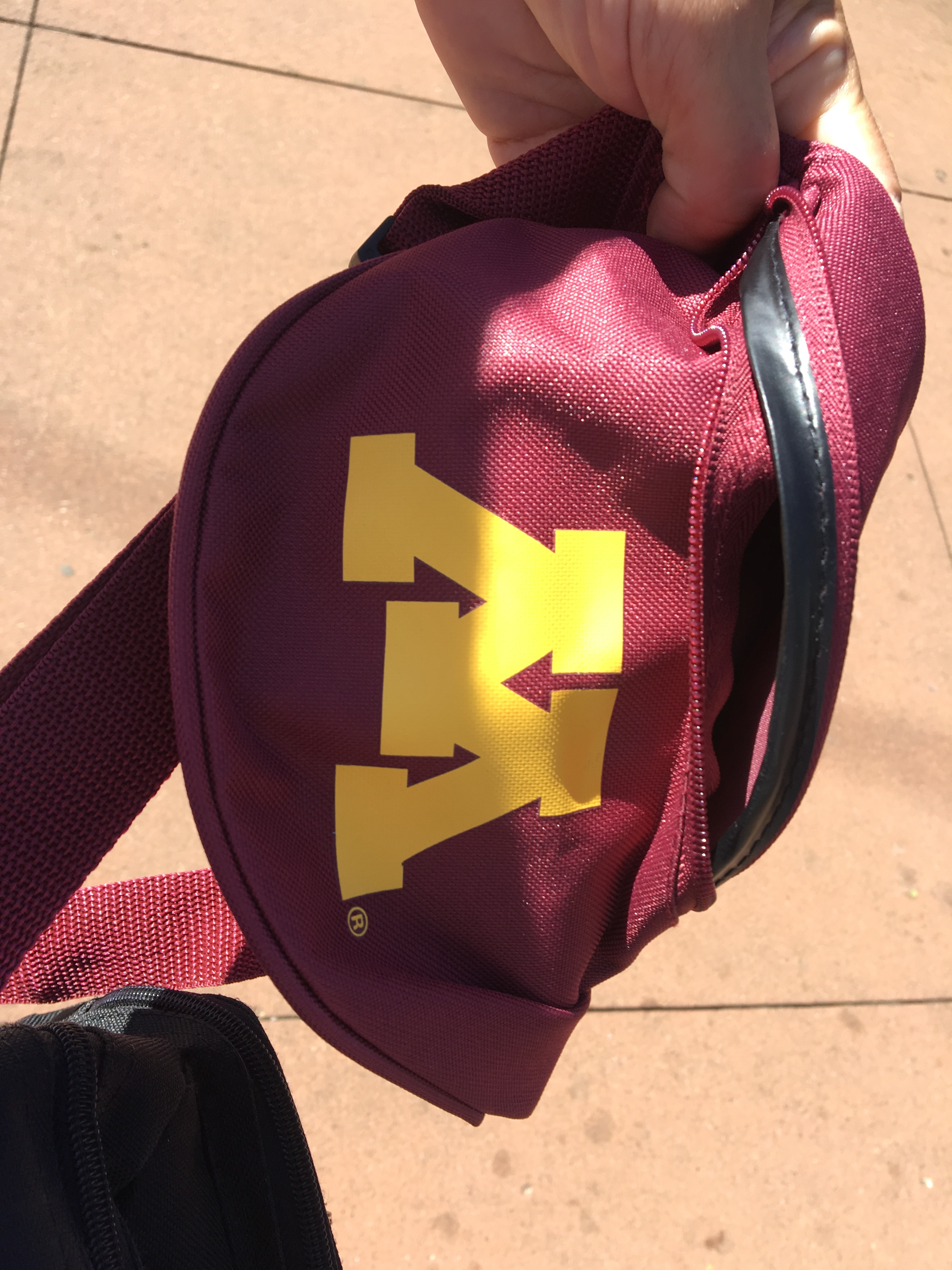I then walked down Dan Patch and noticed the line for U of MN fanny packs. It was down to the end of the block near Worlds Greatest French Fries and I decided today would be a good day to wait. We made a little kibbutz with the line neighbors and discussed our odds of receiving the goods. There was another block length of people behind us shortly, so if they were that optimistic, our confidence increased.