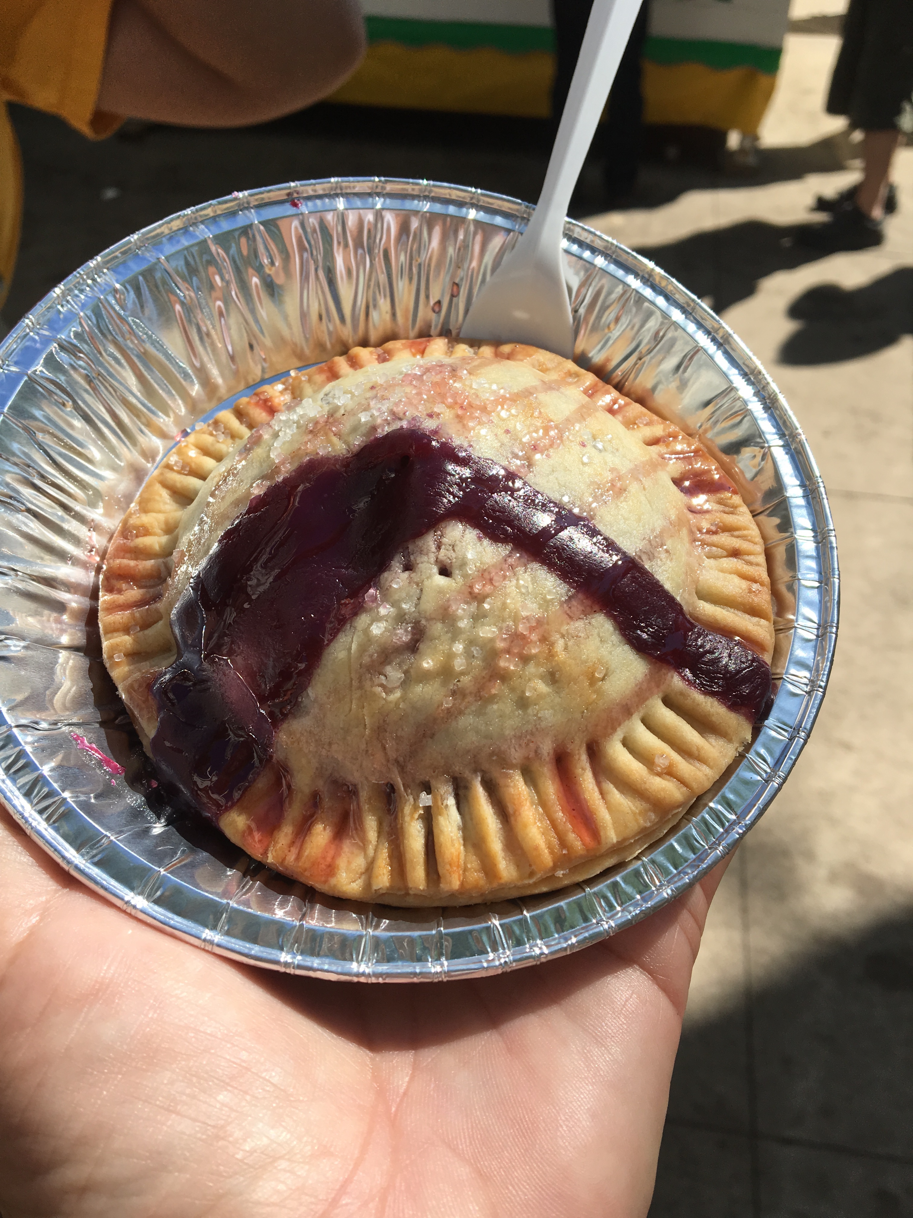 Waiting in line, I encountered my alphabet Forest friends Dan & his daughter Trina. I’m not sure where exactly they were headed, but it didn’t take any convincing for them to follow me to pie!