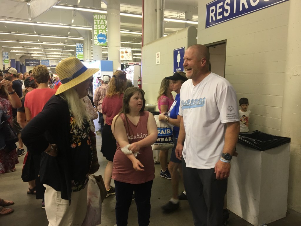 We headed to the Grandstand so Mark could look into getting a replacement part from the Salsa Guy! They use that food processor so often, they wear out the parts! Nothing is stocked at the fair, so he’s got to follow up later. We needed a restroom break and the lines were so long! Even for the men’s room! I snuck around the back entrance bypassing the line and got dirty looks from people just standing there waiting for a full stall door to open. Sometimes you need to stop being Minnesota nice passive aggressive and just be aggressive. There was a bank of open stalls, and once the people in the front of the line recovered from thier indignation, they followed my lead.