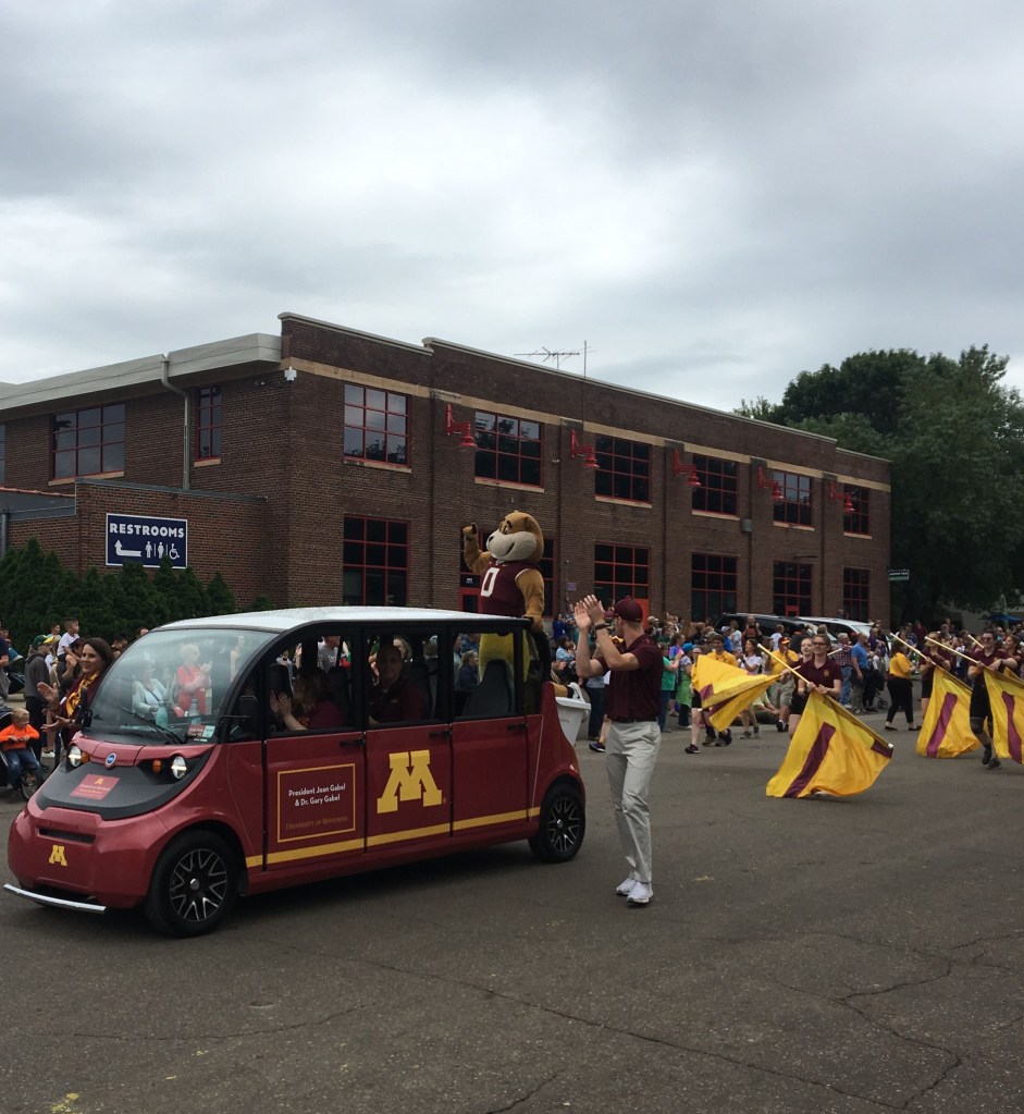 Andrea was ready to head home so I walked her towards Gate 5. We arrived just in time to see the U of MN marching band pass by. Ski-U-Mah!