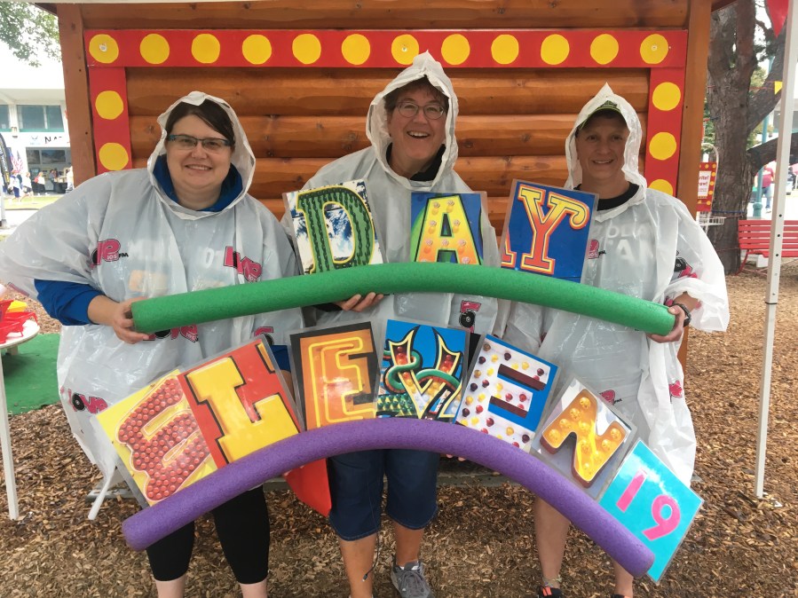 We donned our “Love” gear and splashed our way over to the Alphabet Forest. Most of the stations were covered in blue tarps, protecting all the paper & books from the rain, but the photo booth was still operational, so we were able to capture the rainy spirit of the day!