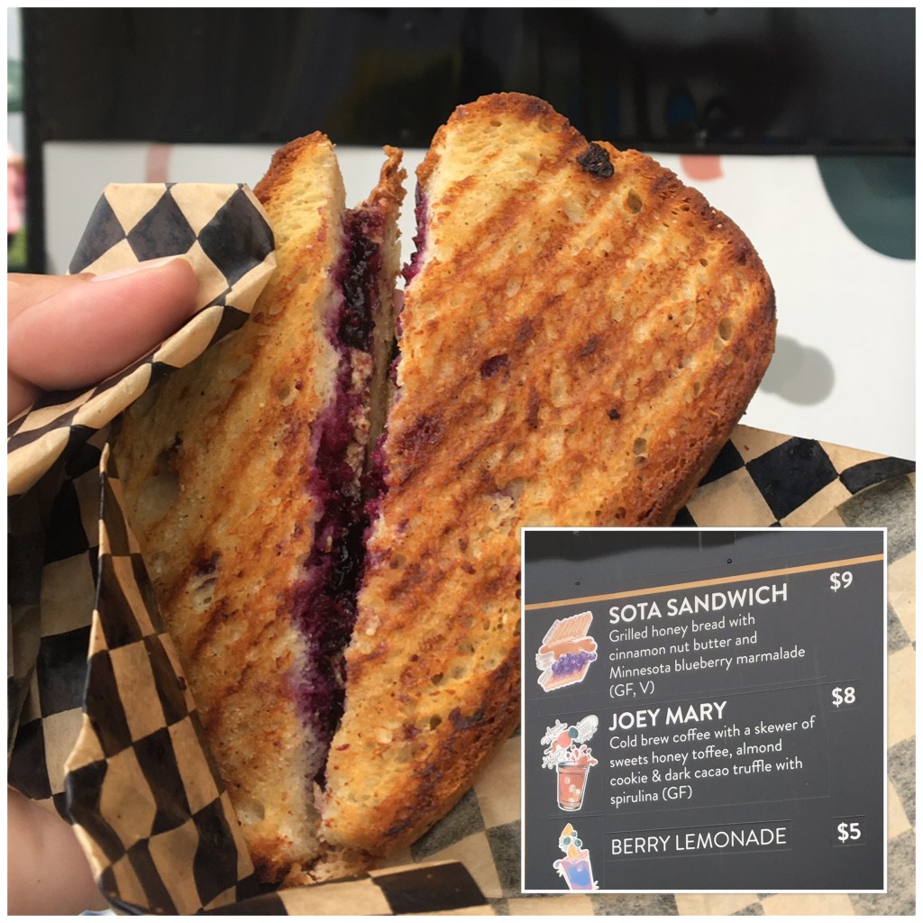 We wanted to go see the 11:00am rescue dog stunt show, but it was canceled due to the rain. Instead we walked up to the far north end to the Brim and tried the new Sota Sandwich. It was delicious, but also a stick to the roof of your mouth kind of sandwich.