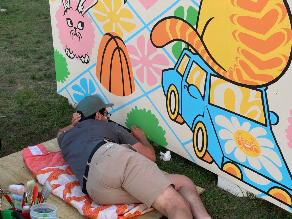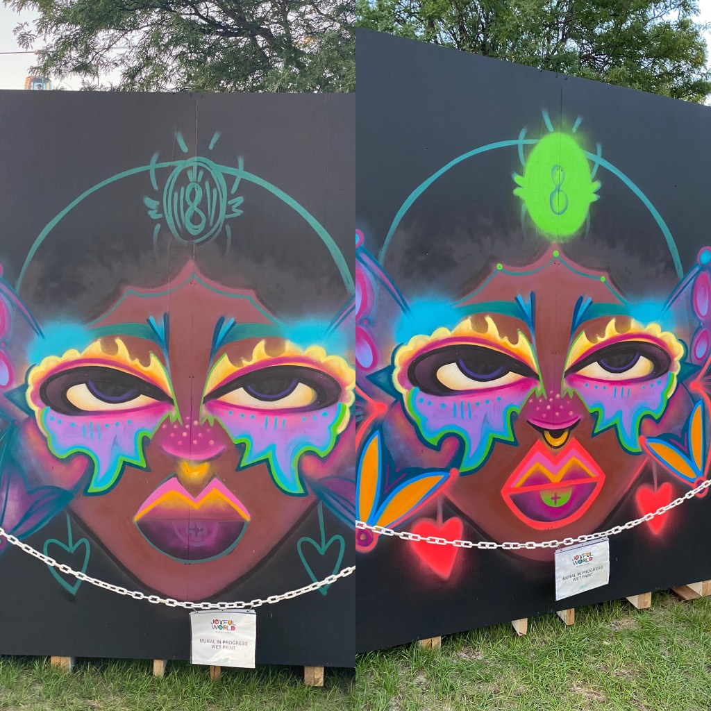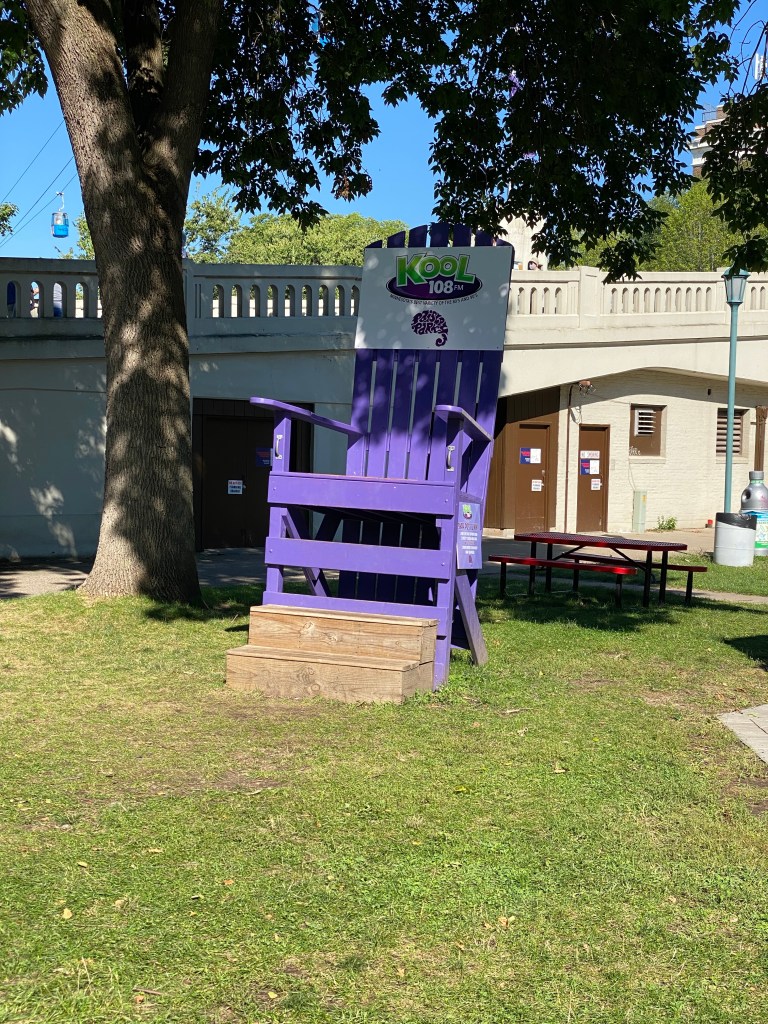 Next on my agenda was to see the artists working on the murals so I headed towards the Midway. I found another chair E & I might need to try!