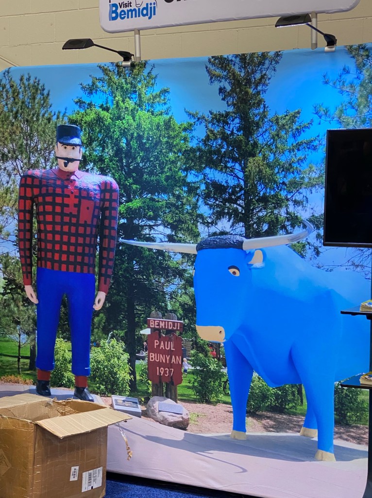 Into the Education building I went to find more people than I’d encountered before. Bart & Sonja gave me excellent directions, so I made a beeline to the back corner snd grabbed my cute Bemidji lumberjack bag and the pop up fan next door.