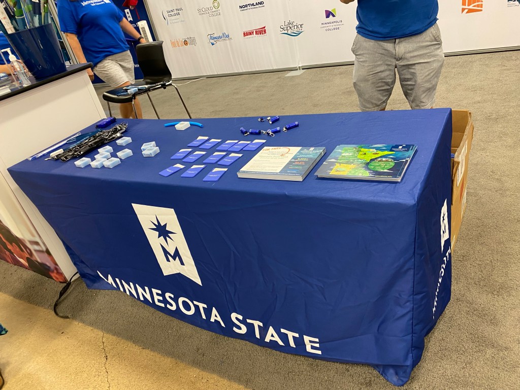 By no means was the building crowded, there were just a few more people than the usual none so far. I didn’t want to linger, but stopped at Minnesota State colleges booth and got to choose from a plethora of giveaways. I chose a lanyard that is a phone charger and I decided it will make a great mask clip so I don’t fling and lose another one!