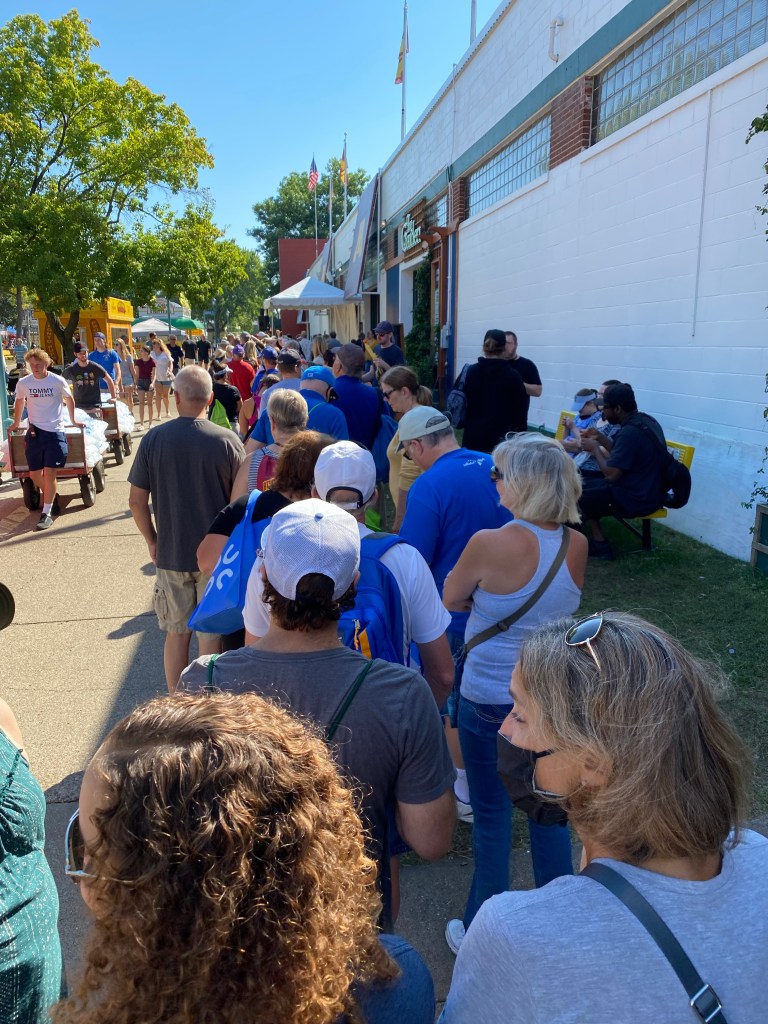 The fanny pack giveaway at the UofMN building was three minutes away so I got in the line. Contrary to every other day so far, today there have been a few lines.
