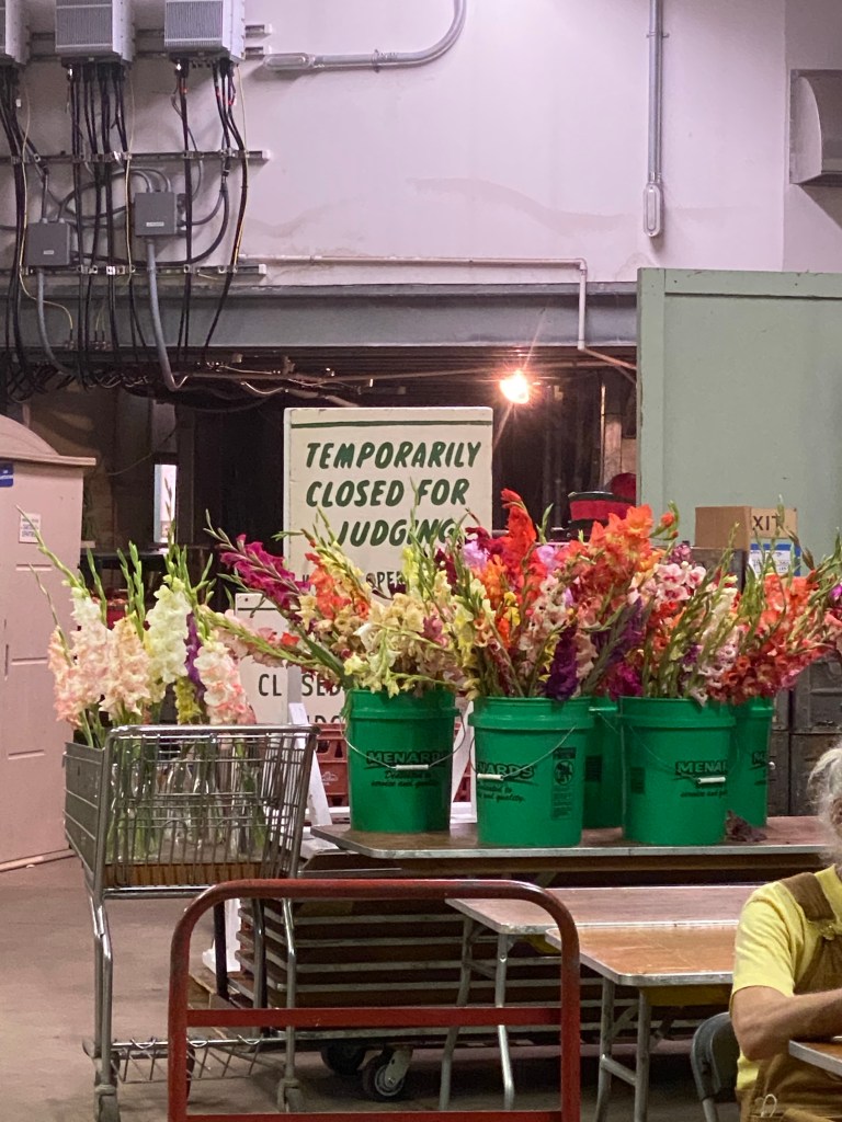 We walked up the empty back road to the Territorial Pioneers building, looked around a little with no one to get in the way. Jack wanted to see a little more of the Ag/Hort. Walking around the outside to find the best entry, I saw a sad sight. Now I know where the gladiolus go….after the show.