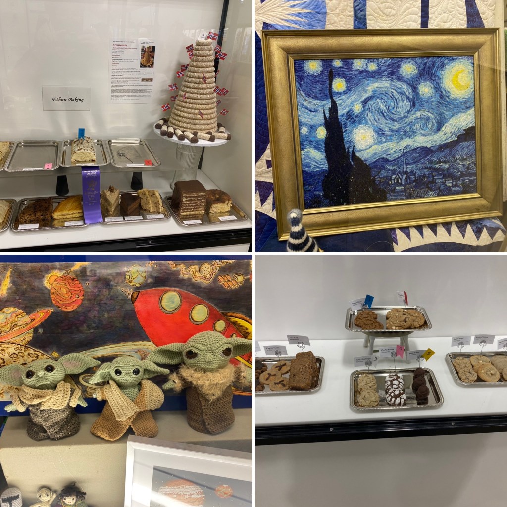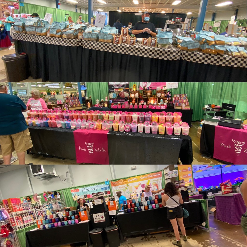 It’s a quick trip through the building when there are no lines. Since we were already inside, I was curious what vendors returned this year into the Annex. There are only about eight spaces. The soup sample and wine slushie people are back, along with the syrup and the Swiss peeler guy. I decided to not partake in communal food this year as no we moved through quickly. As we approached the back side of Creative Activities, a dad was dragging his young son though (I’m not sure where they thought they were headed) but I overheard the kid say, “Dad, what is this place?” The dad replied “it’s a senior citizen museum”. I laughed out loud at that one!