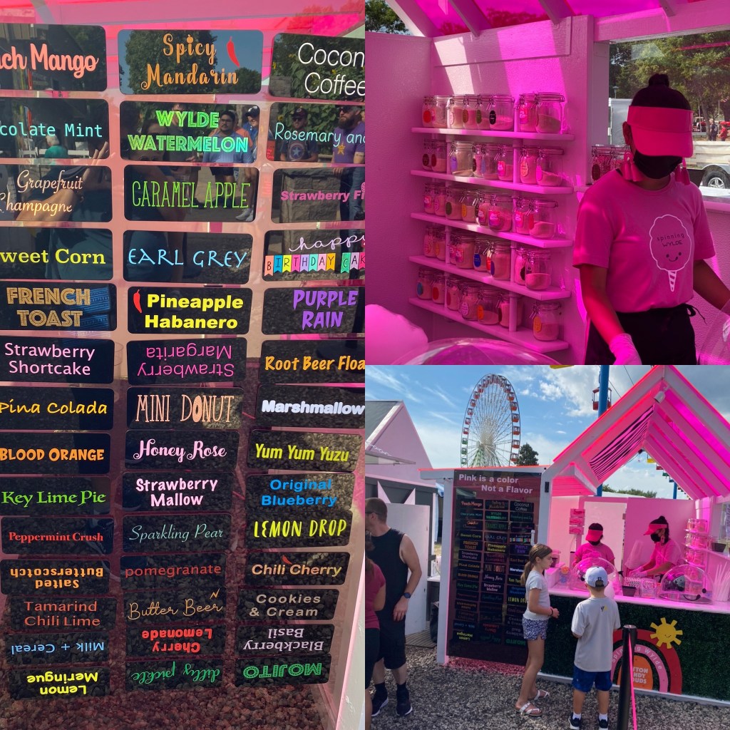 The Spinning Wylde cotton candy offers a million flavors, but no artificial colors. They have a wall of flavor crystal sugars! I like their saying “pink is a color, not a flavor”