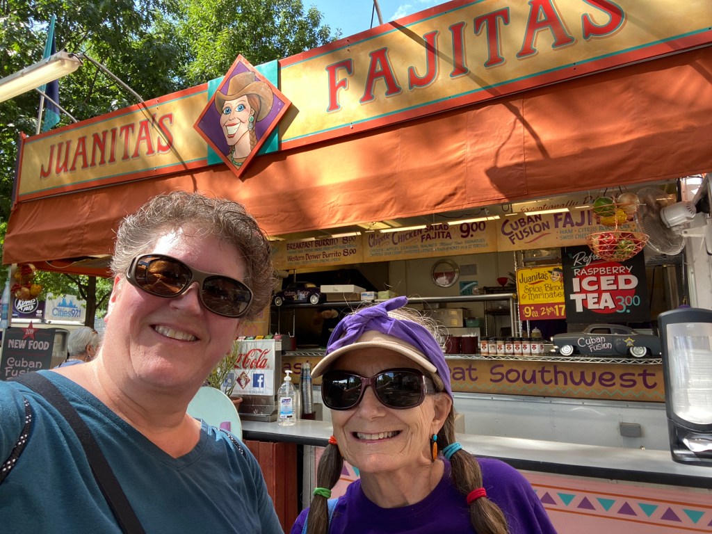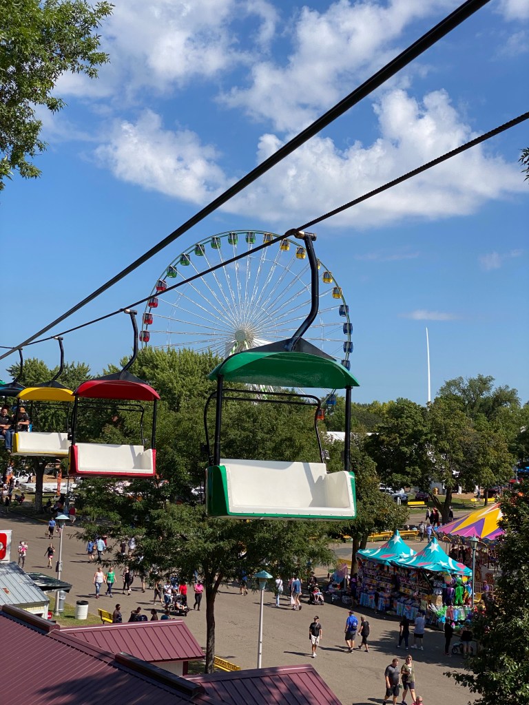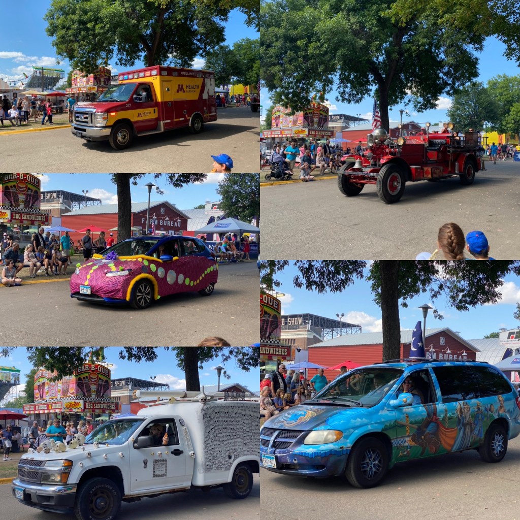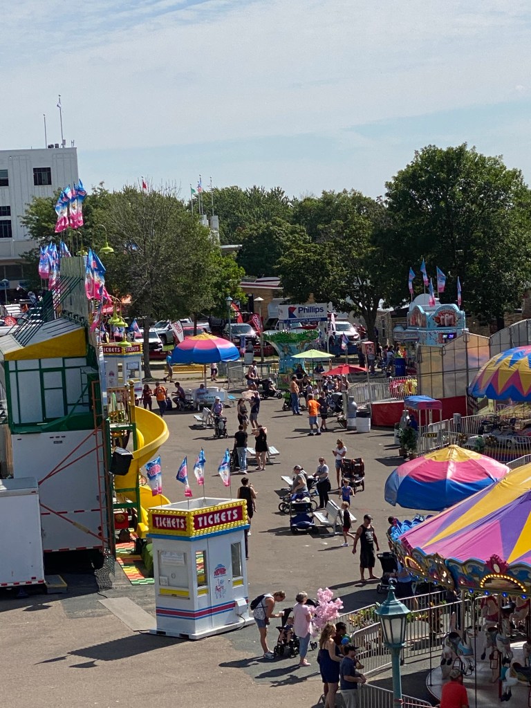 I left half an egg roll, Mike & Kathleen, a bucket of nachos and a couple beers sitting at O’Gara’s, to return to car and get my tired kid (still recovering from surgery) back home. Despite all the riding and resting, I did enough backtracking through the fair today to tally 20k steps, my biggest count this far. I hope I don’t regret it!
