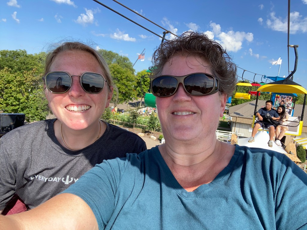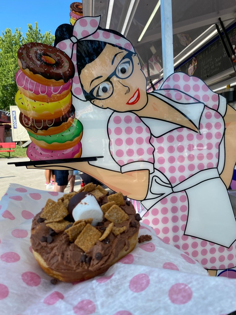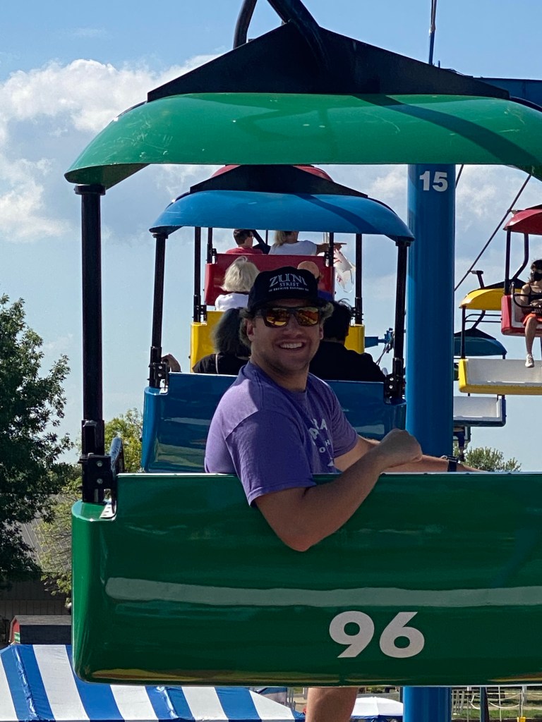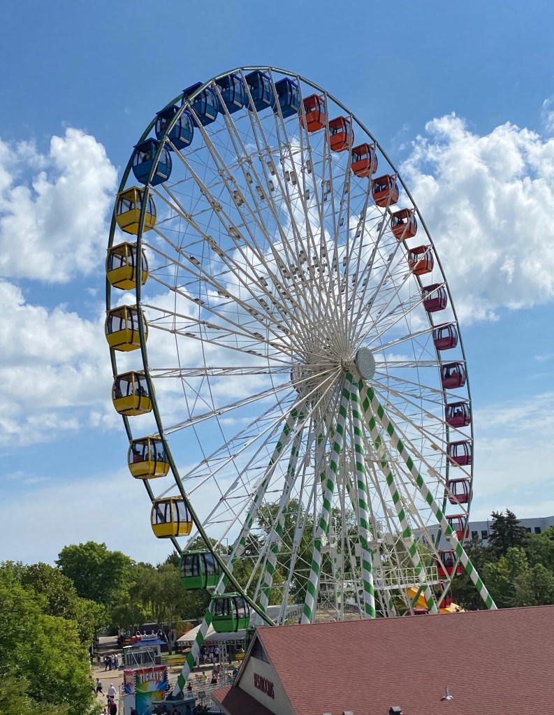 I left half an egg roll, Mike & Kathleen, a bucket of nachos and a couple beers sitting at O’Gara’s, to return to car and get my tired kid (still recovering from surgery) back home. Despite all the riding and resting, I did enough backtracking through the fair today to tally 20k steps, my biggest count this far. I hope I don’t regret it!