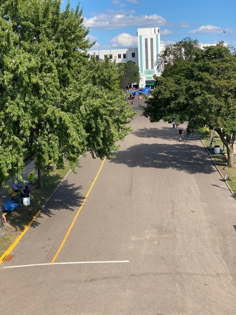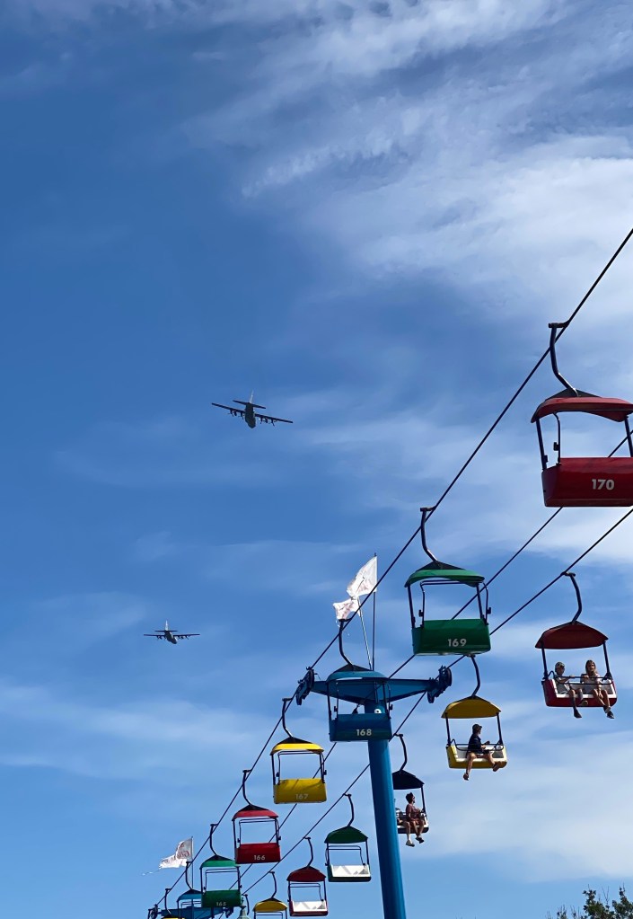 We were killing time until we’d meet up with Morgan, so I suggested another ride on the Glider. It’s a favorite thing to do, and Jack wasn’t 100% sure he’d make it back out here. I bought another round trip ticket to split and we hopped on at the grandstand end. I’m adjusting to the smaller crowds, and enjoying the space, but a completely empty street at 3pm is quite a sight to see. Usually there are traveling pop up vendors along here, but nothing this year.
