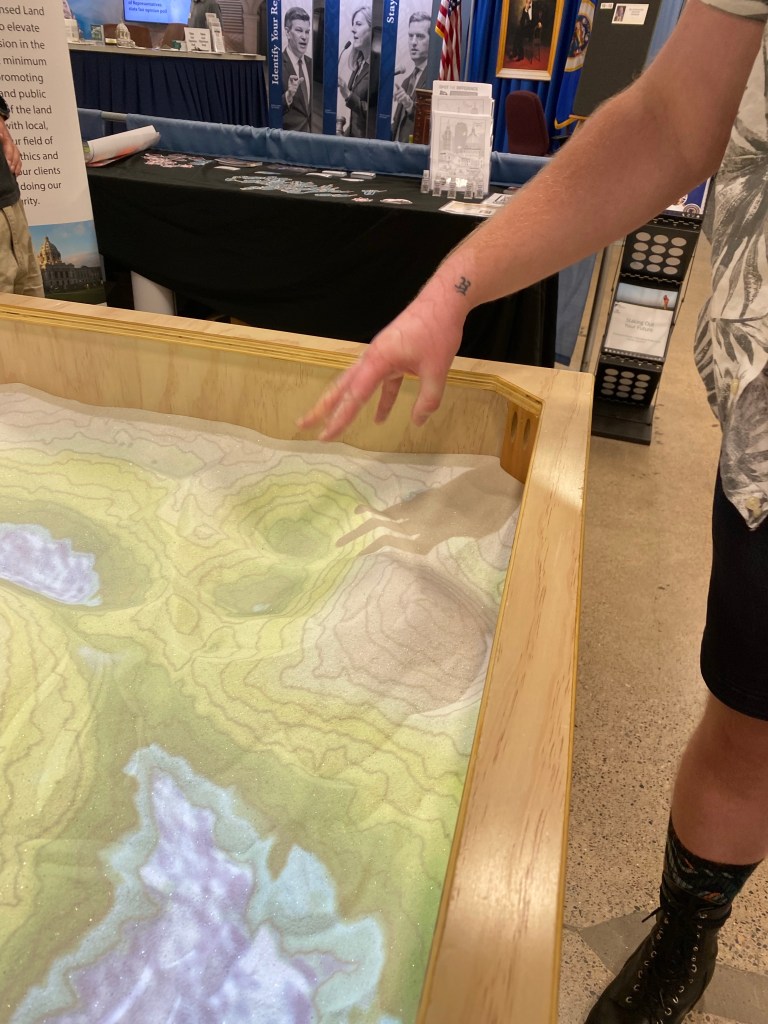 Jack found a display with an AR sandbox. It was super cool to manipulate, but I’m not a fan of sand. (Or sticky, or glitter…) After playing for a minute, Jack had some sandy granule covered hand regret.