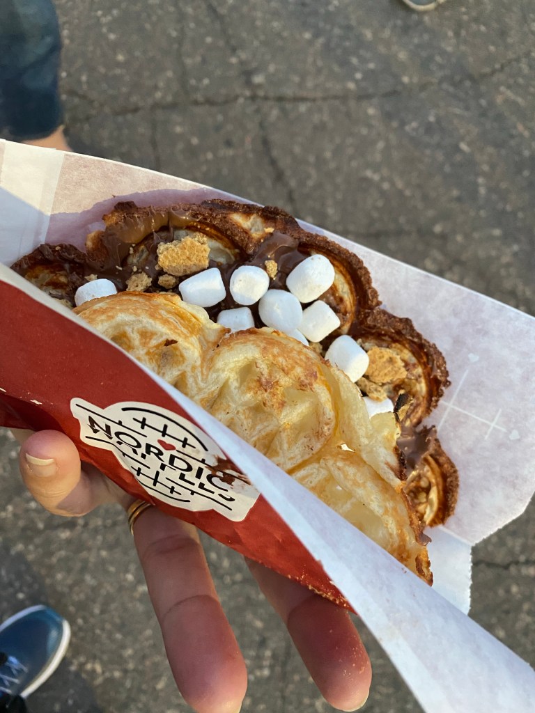 They went on to the concert and as Jack was choosing his new hat at “i like you”, Steve & Karla popped up and surprised us. With some protein ingested, we couldn’t pass up a nordic waffle. S’more seems to be theme for me today!