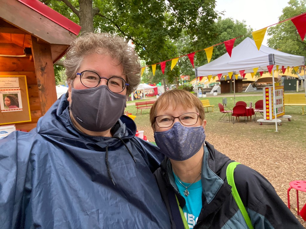 It’s been far too long since we’ve seen each other! We stood in the Forest catching up for about a half an hour before we realized we could ~walk~ and ~talk~. We both have the gift of gab and you could get whiplash keeping up with our conversation! Helen had one more punch on her history walking tour, so we headed to the grandstand, non stop taking. She punched her card and had to collect her prize before 8:00. It was already 7:30, we’d stood there chatting for another hour! The prize collection site was no longer inside the grandstand this year, unbeknownst to Helen, so we had to get up to the Bailey House before they closed, or I would be personally responsible for claiming her prize at a later date!