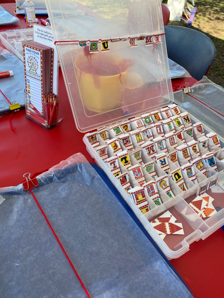 It was a quiet, rainy afternoon in the Forest. My post today was helping to make mini banner necklaces. It can be a sticky job, but with limited visitors, I passed the time organizing letters and washing glue sticks.