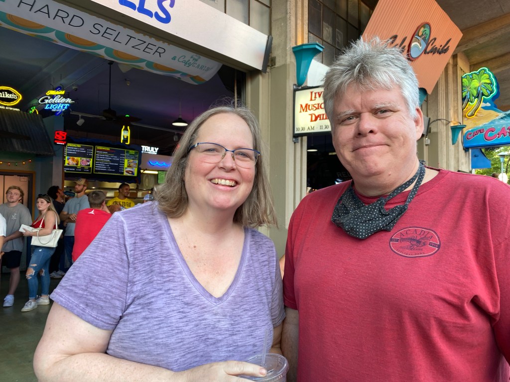 With food on board, it was time for beverages. Back to our beverage spot at Cafe Caribe. We coordinated via text to meet these two here also.