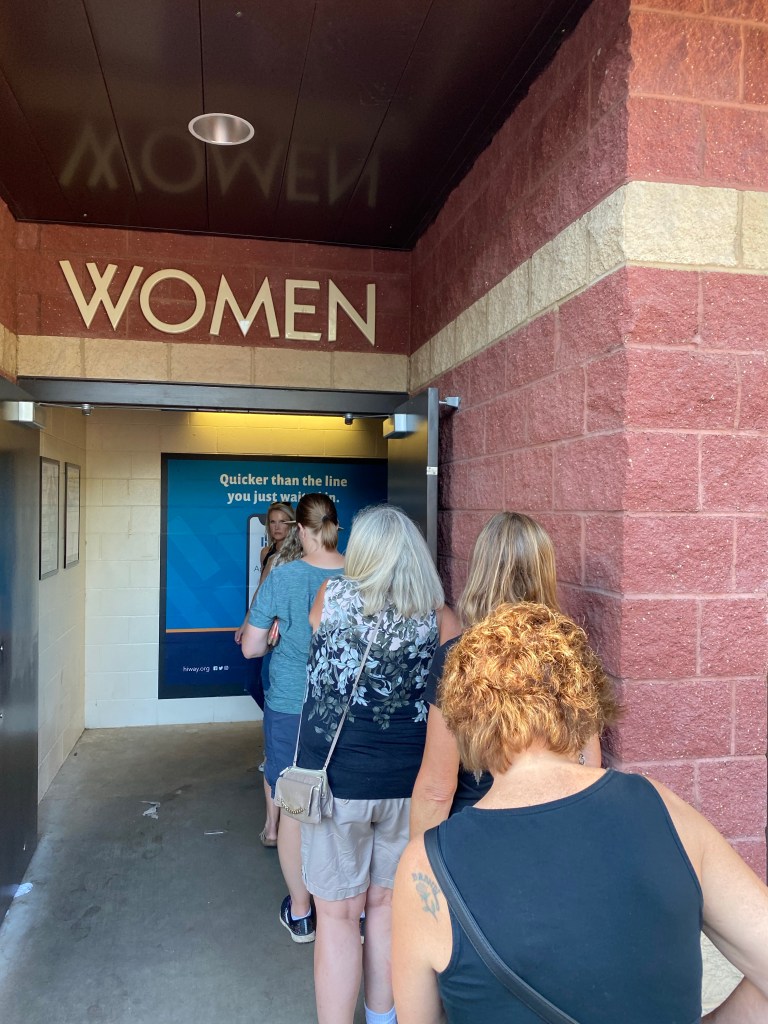 There is one of the newer large bathroom buildings right here, but as I went to the back to use the facility, lo and behold, I find my first line of the fair. Kathleen followed shortly after me and the line had tripled.