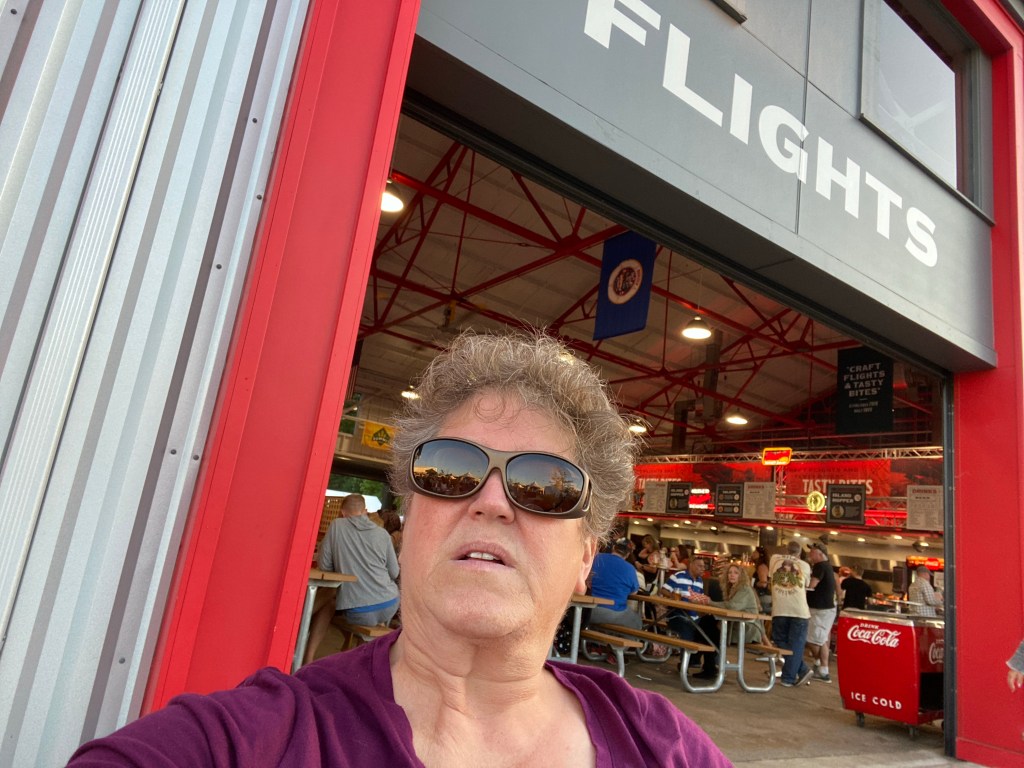 The coordination was witnessed when we watched in awe as this guy dropped his napkin and using Mikes empty seat, was able to somehow balance his full drink on the edge, get the napkin, wipe his hands (?yuk?) and pick the beverage up without spilling. As he walked away another guy set his beverage on the empty seat too… and looked at us both, laughing, and said “just kidding”. He’d seen us staring at his buddy and made an hysterical follow thorough!