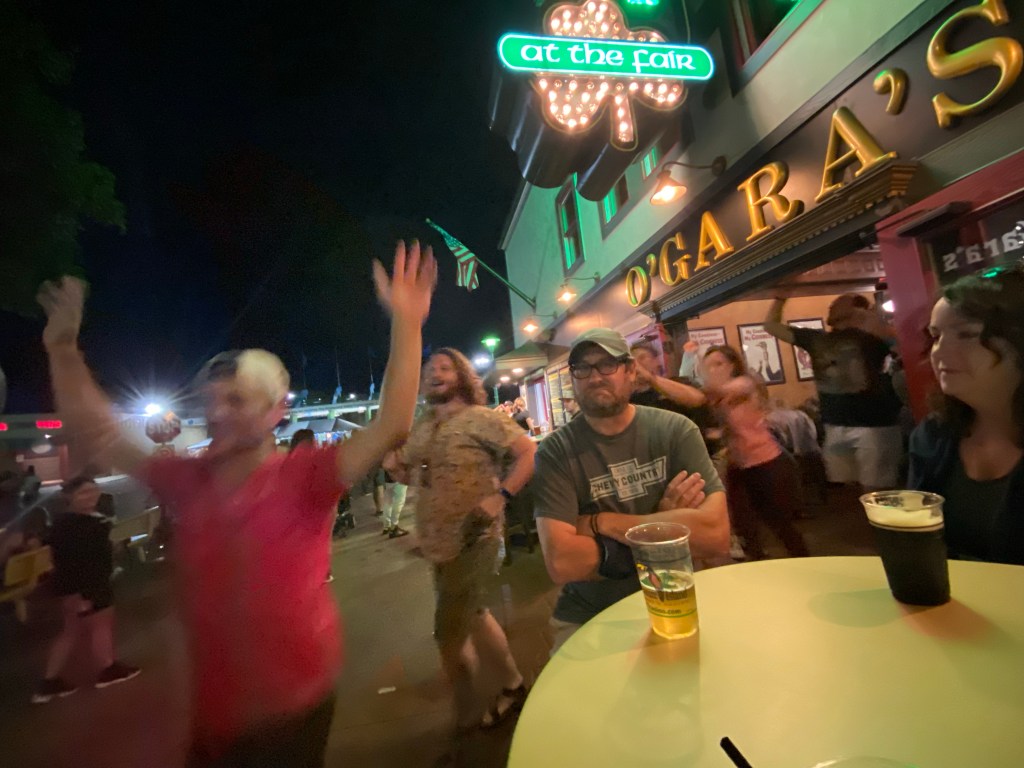 O’Gara’s was our last hope! We found a table outside and the Michael Handler Project was playing inside. Decent music, and we were out of the fracas over on the other side of the grounds.