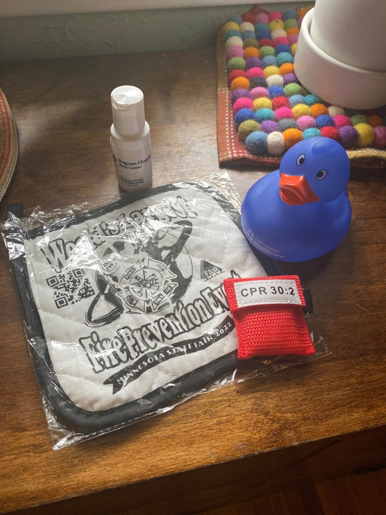 The next stop was Fire Trucks! I have picked up hot pads here for many years and this year they are much thinner than before. I asked the fire fighters distributing the swag if I could feel confident in these inferior hot pads protecting my hands…. One responded “double up” as he tossed me another! That did not boost my confidence. I realized that I just became that person at the fair complaining about a free giveaway….