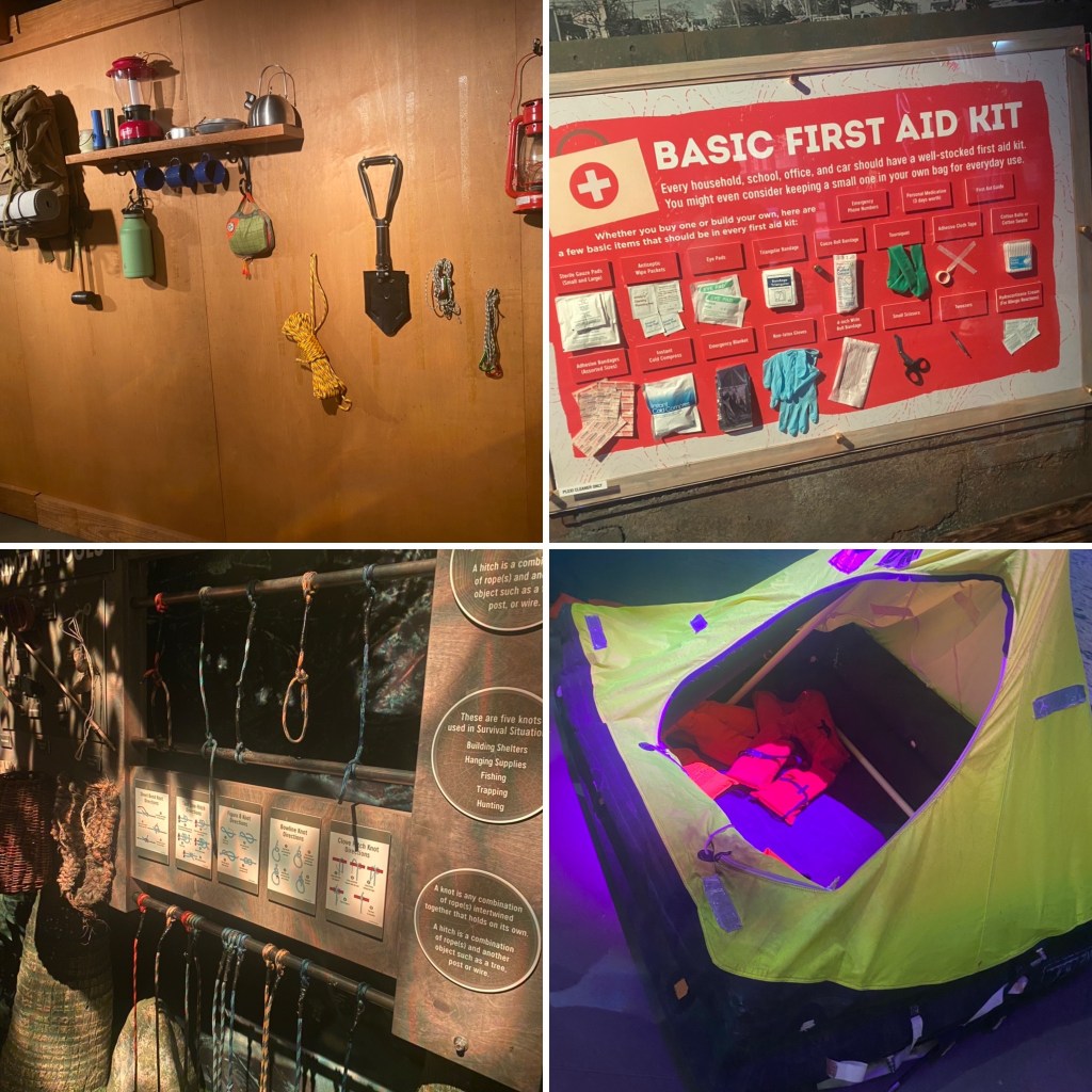 There is a new exhibit inside the North End Event Center called “Survival”. I convinced Mike & Elysia to check it out with me. There was a bit of a line, but the compelling feature was A/C. It felt good to get out of the sun for a bit. The exhibit is interesting, ten (or so) different vignettes with survival suggestions, tools and tips for various outdoor scenarios.
