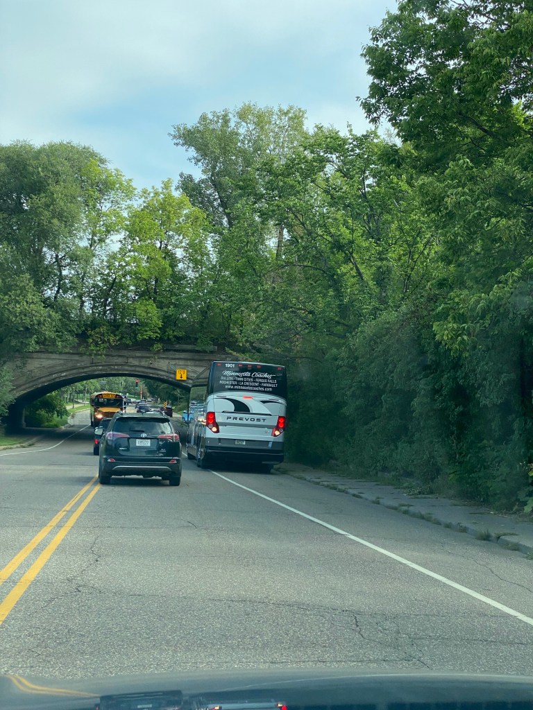 Getting a later start than usual, I found myself in more traffic than I expected. To complicate matters, a coach bus couldn’t make the clearance of the stone railroad arch on Lexington. I didn’t stay to see the resolution, but maybe the approaching school bus helped out with stop arm & lights.
