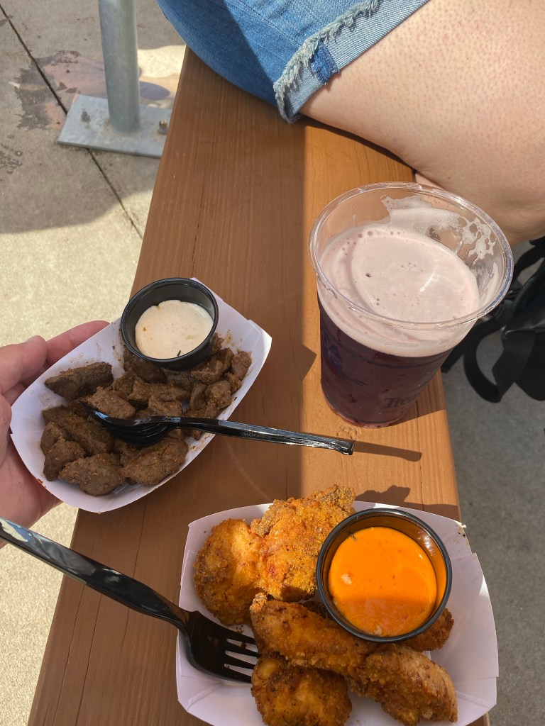 We had time to grab some food & beverages before the show started. E got her breakfast beer, Grain Belt Blu and despite my allergies to beer, I had to try a sip. It’s yummy! It’s blueberry 💙 I picked up bull bites & bang bangs to share for a protein punch after breakfast pie!