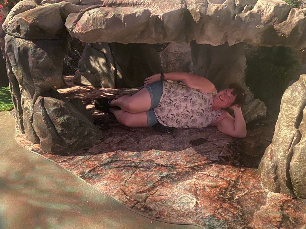We moved through pretty quickly. It’s a ~lot~ of reading and not much interactive stuff. There are knots to tie, building a shelter, climbing in some things, and some blocks, but I think kids under six might not be entertained. it was cool and shady and the couch was pretty comfortable!
