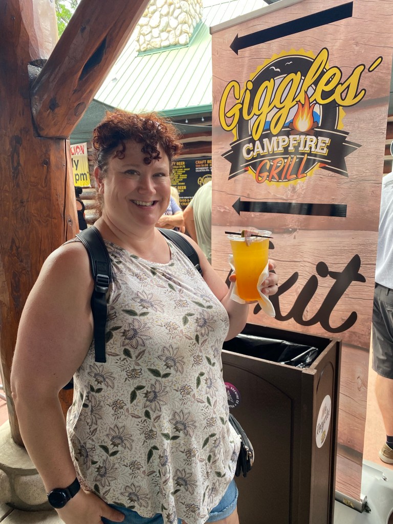 Always thinking about the next food or beverage opportunity, we decided to head to Giggles. The food lines were long out front so we scooted around to the bar only line and grabbed some refreshment. Elysia decided on the new Olive lager, served like a beer-tini!