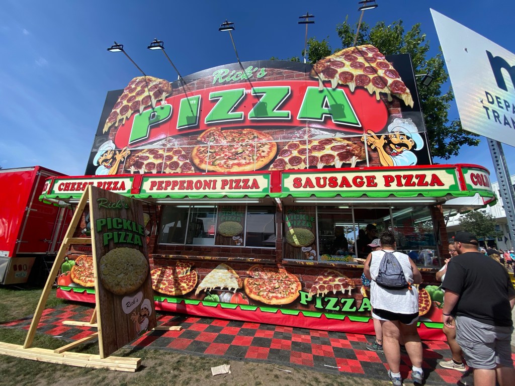 Today was too beautiful and a little too busy to spend time inside buildings, so we walked past Fine Art, 4H and chanced upon the new Pickle Pizza stand. Long, long lines and so far reviews have been good.